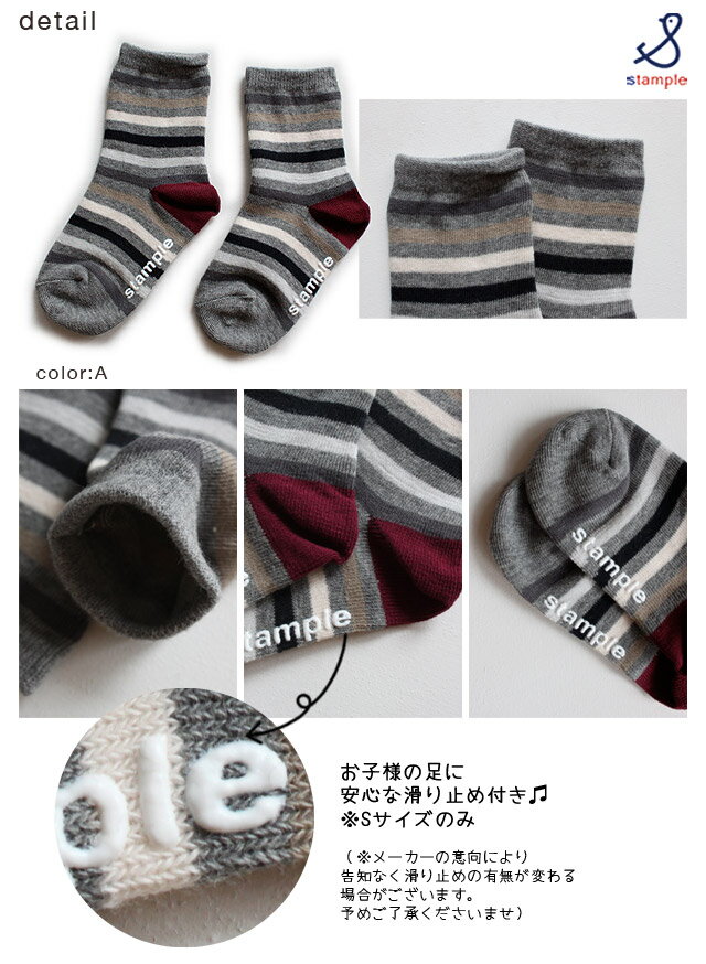 スタンプル SP クルーソックス 3足組 13cm-21cm_Stample | 靴下 滑り止め 靴下 15cm子供 すべり止め ポッキリ 靴下 履きやすい キッズ 子供用 子ども こども 女の子 男の子 保育園 幼稚園 靴下 ボーダー 靴下 _71804