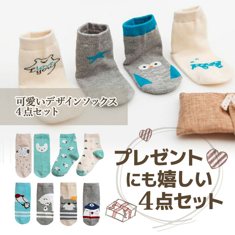 ベビー 靴下 4個セット 韓国子供服 韓国ファッション ソックス 赤ちゃん 10cm 11cm 12cm 13cm 14cm 男の子 女の子 春 夏 秋 冬 滑り止め付き 保育園 可愛い ギフト プレゼントポイント消化 プレゼント ギフト