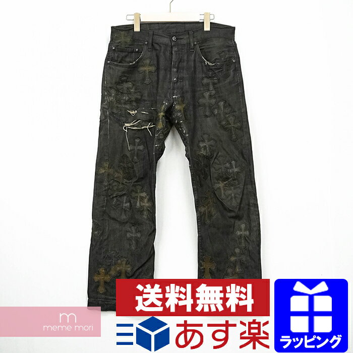 CHROME HEARTS Denim Pants クロムハーツ デニムパンツ ジーンズ カモフラクロスパッチ 迷彩 リーバイスボディ 501 ブラック【210116】【中古-B】【me04】