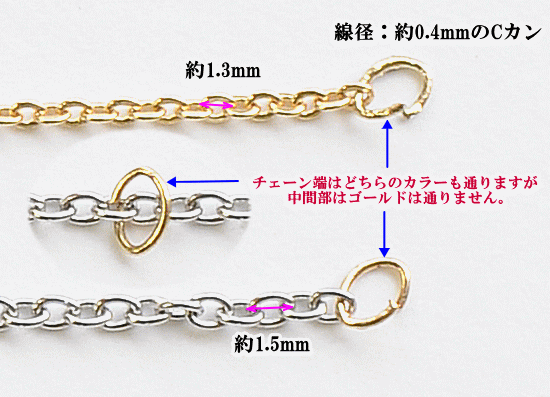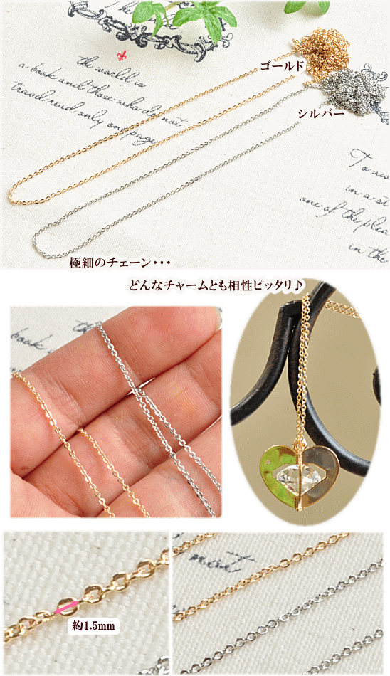 )マシーンメイドチェーンゴールド約1.3mmシルバー約1.5mm1m全2色極細のチェーンです。