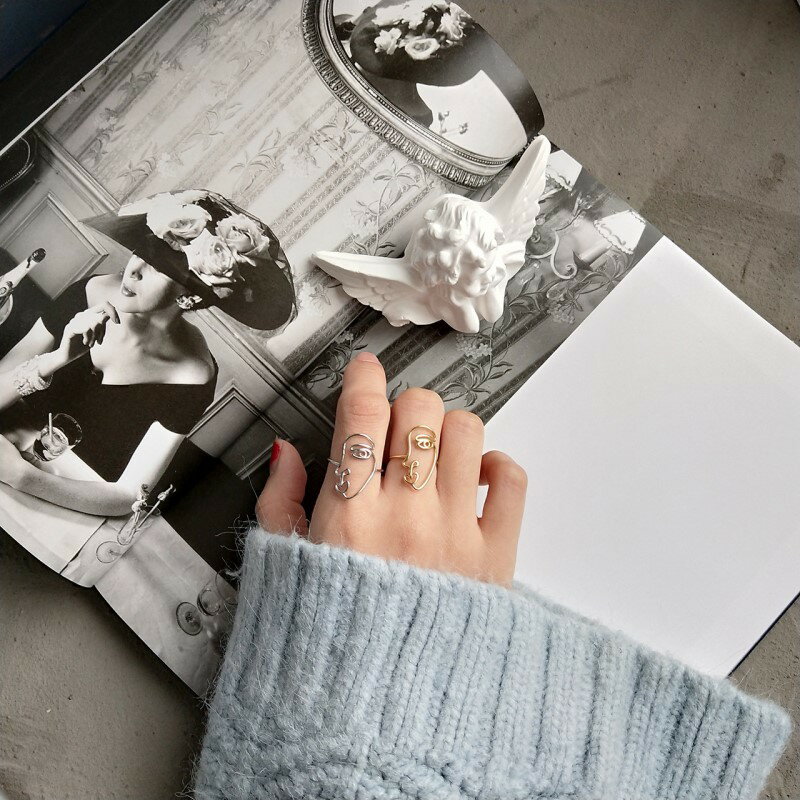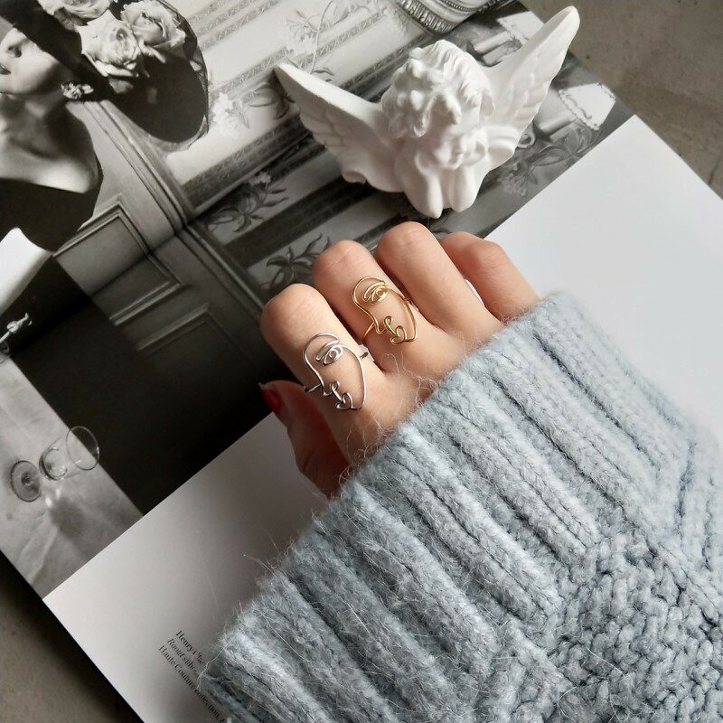 送料無料指輪 オープンリング アクセサリー レディース 女性用 シルバー925 横顔 個性的 ユニーク 調整可能 かわいい おしゃれ シンプル ギフト 記念日 誕生日 プレゼント 贈り物 ファッション小物
