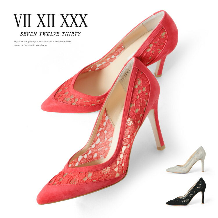 【訳あり】【アウトレット】 セブントゥエルブサーティー ハイヒール パンプス レース ポインテッドトゥ レザー オーク レッド ブラック 102381