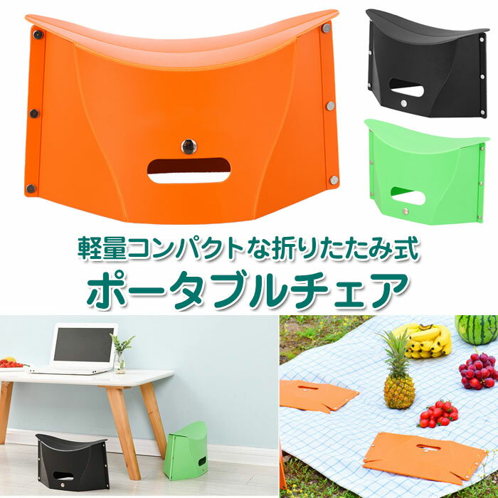 ◇ 折りたたみ ポータブルチェア 仕様 ◇ ◆ 組み立て時サイズ:約横幅32cm×奥行13.5cm、高さ(中央部)15cm(両端)18.5cm ◆ 折りたたみ時サイズ:約縦幅21.5×横幅37×厚み1cm ◆ 耐荷重:約60kg ◆ 重 量:約250g ◆ カラー:グリーン、ブラック、オレンジ ※ 説明書等は付属しておりません。