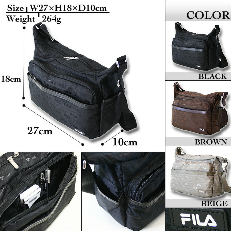 サイズ 重 量 約 W27×H18×D10cm 約 264g素 材 ジャガード仕 様 ●カラー:ブラック・チャ・ベージュ ・収納:天ファスナーメイン収納 ・内装:ファスナー付きポケット・オープンポケット ・前面:マチ2cm付きファスナーポケット(携帯ポケット、ペンさし)ファスナーポケット両サイドオープンポケット・背面:ファスナーポケット ◆MADE IN CHINAジャンルショルダーバッグ【旅行】【タウン】【この商品の特徴】【この商品の特徴ナイロン A4以下 ヨコ型 軽量【カラー検索用コード】【カラー検索用コード#000000この商品の特徴ナイロン系 A4未満 ヨコ型 軽量ひとこと メモ使い勝手の良いショルダーバッグは、誕生日やクリスマスのプレゼントに良いでしょう。
